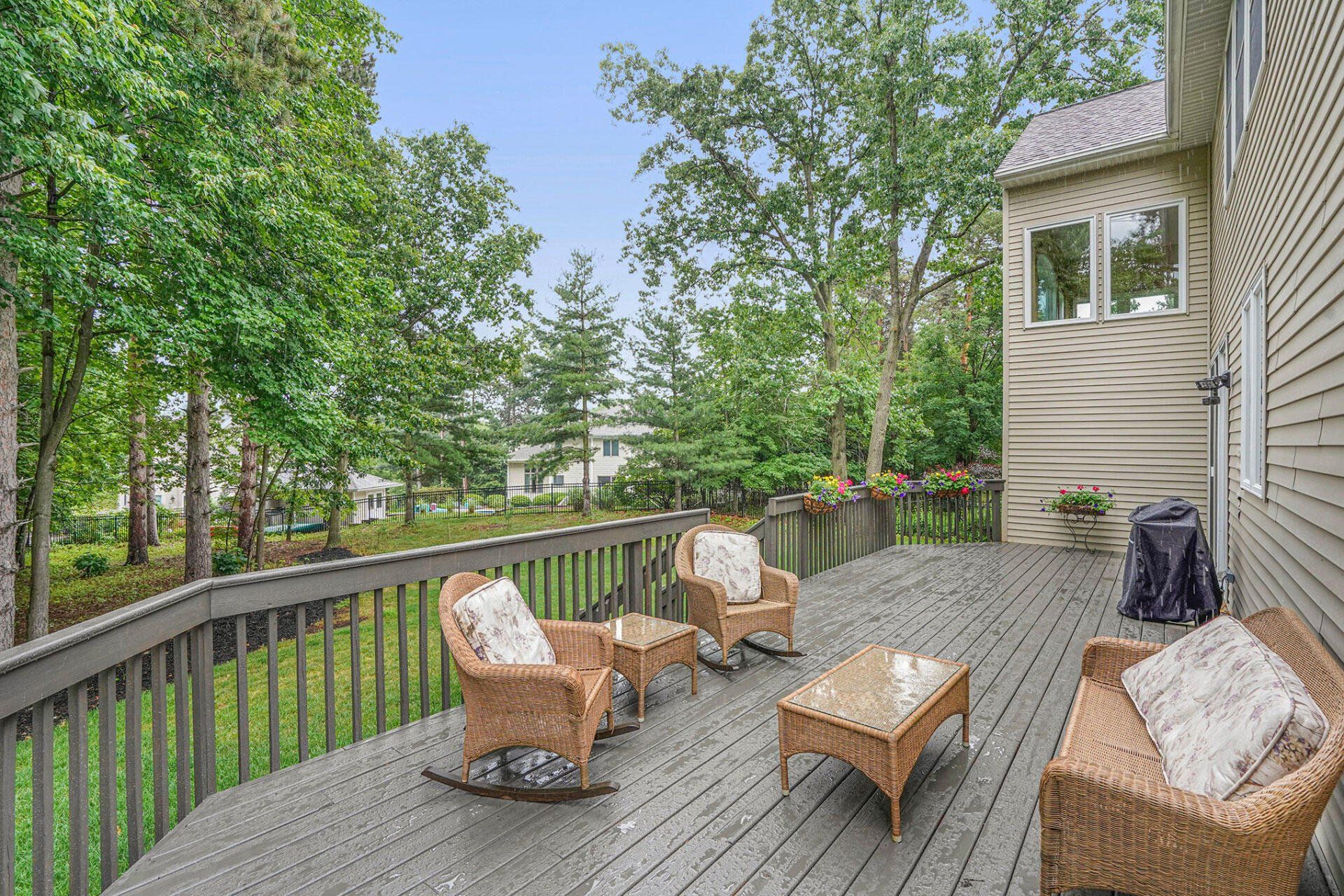 Enjoy outdoor entertaining from the open eating area with wooded views and an expansive deck.