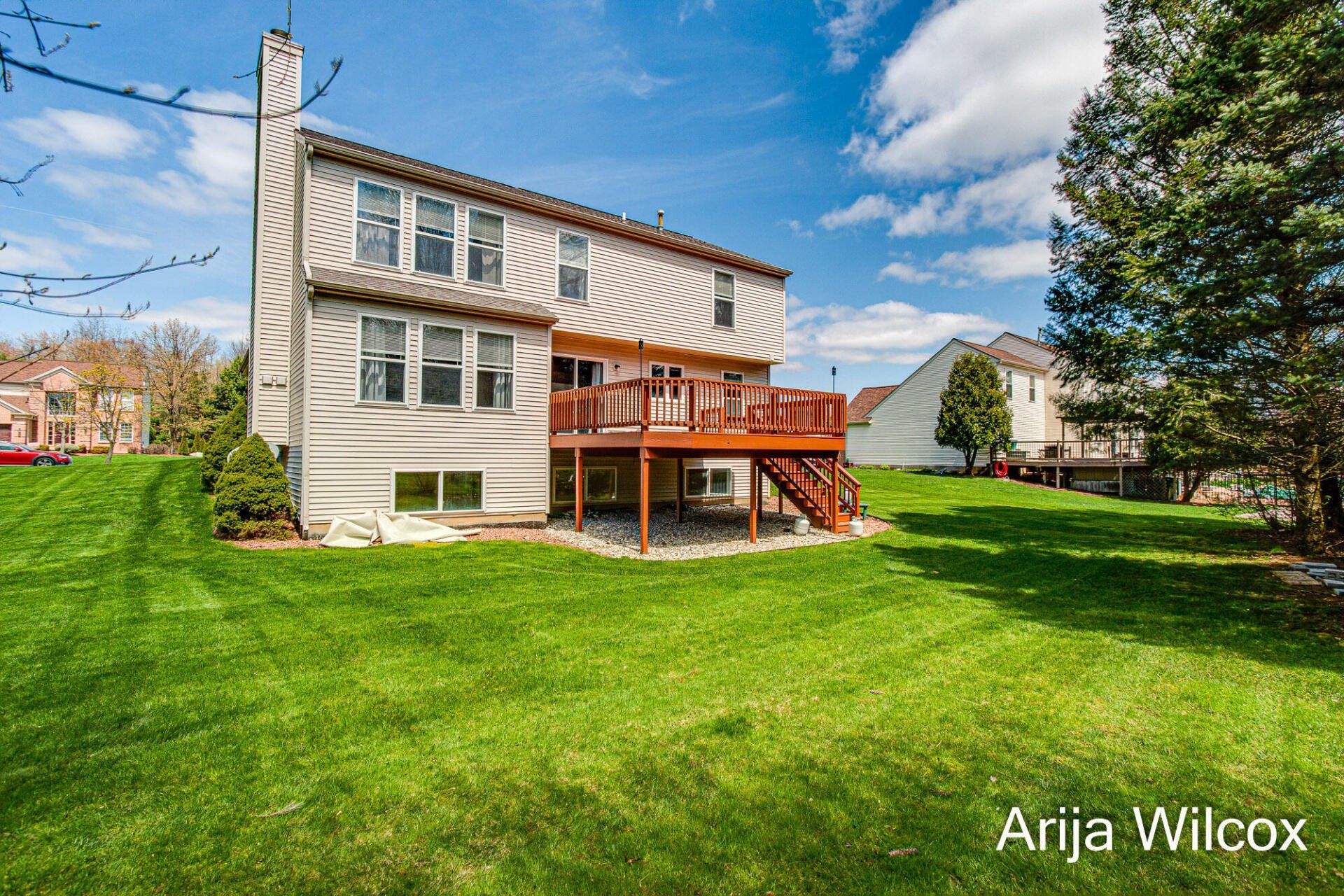 Great rear yard ready for outdoor entertaining with expansive deck! Spacious 2-car garage with attic storage, professional landscaping, underground sprinkler system included.