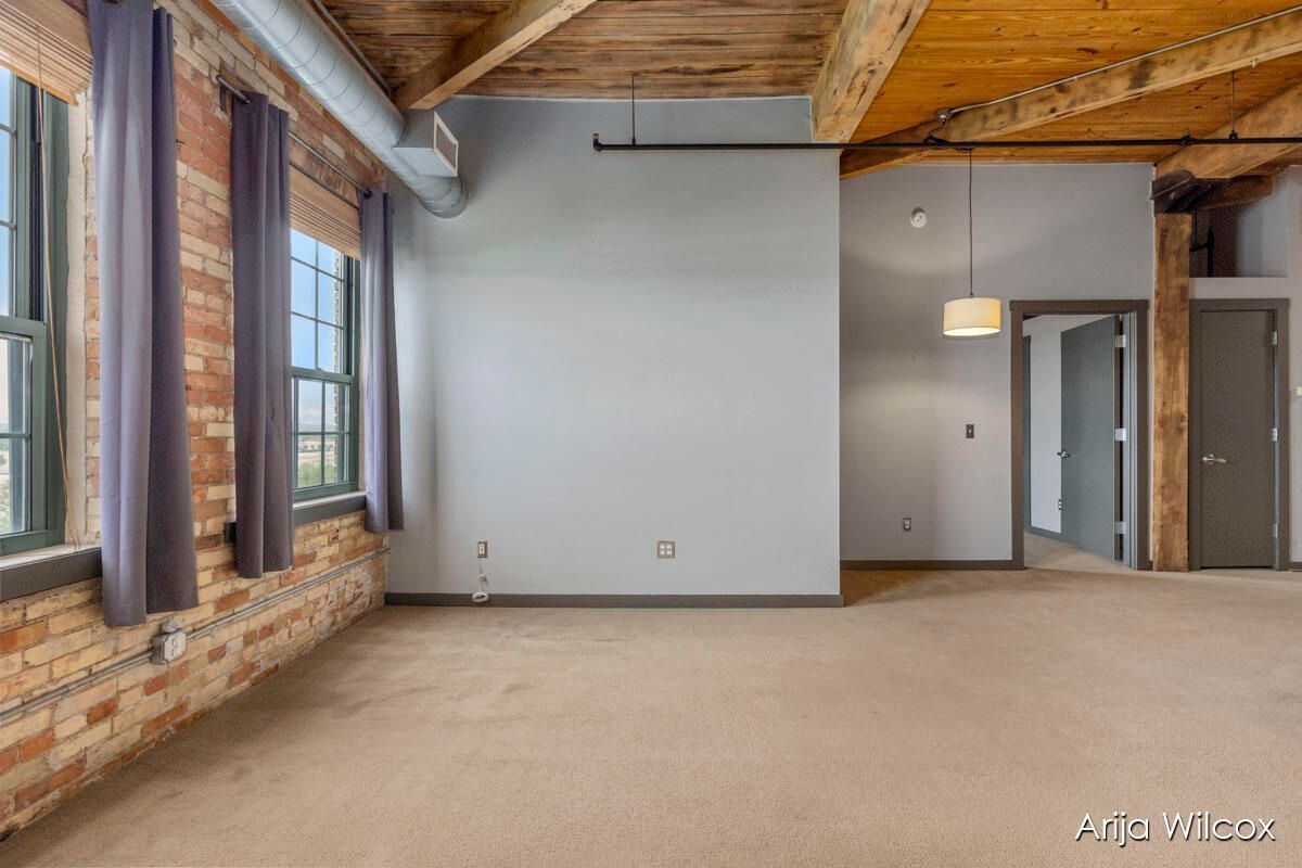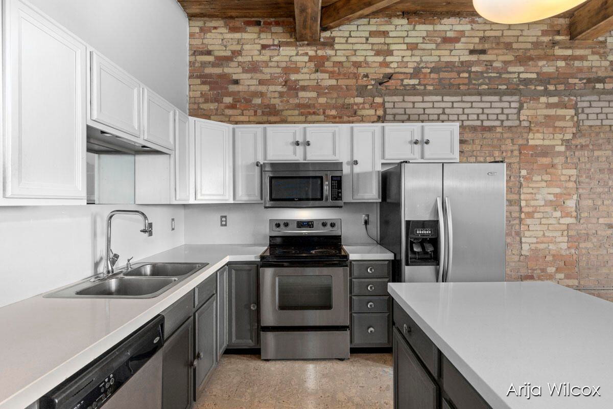 Enjoy trendy interior details, 12' 6'' lofted wood beamed ceilings, and historic brick detail. Custom-designed kitchen has granite transformation counters, white cabinetry, and stainless appliances. You'll enjoy the appealing living space with a cozy dining area, and calm interior finishes. The expansive bedroom has an area for a mini-office.