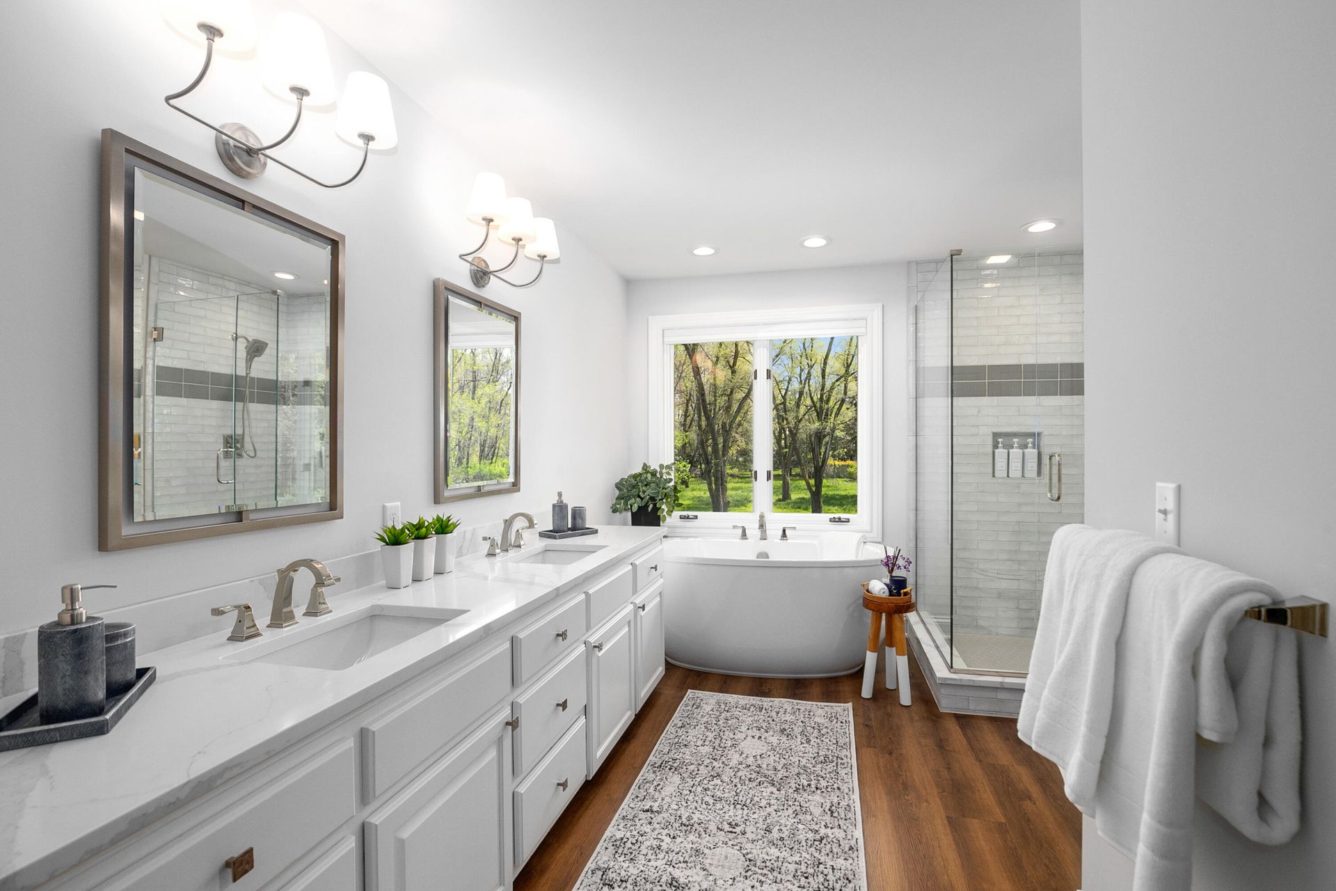 Second floor features the generous primary suite creating the perfect place to retreat, reflect and rejuvenate providing a calm and serene place to be after a busy day with dual quartz vanity, custom tile shower, and sleek free-standing and soaking tub to melt your worries away. Two additional spacious bedrooms, and an additional full bath complete a wonderful balance to the upper level.