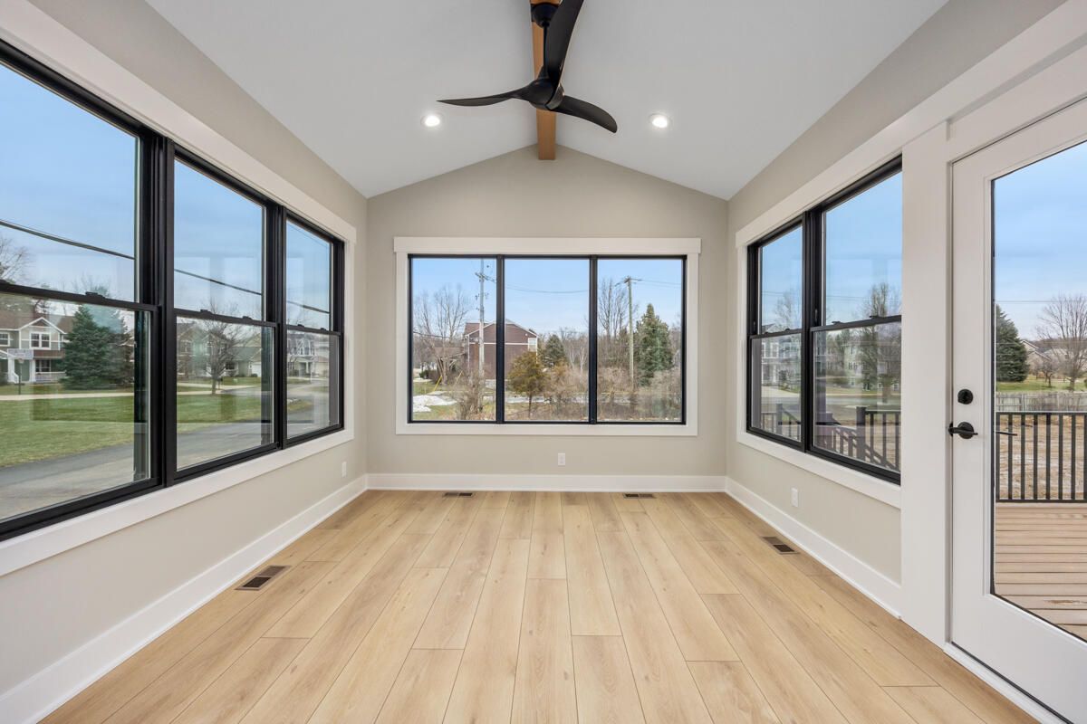 Continue through the living room with palatial ceilings, cozy gas fireplace + built-ins, and dining room, to the bright sunroom where luxury vinyl plank flooring continues with a wood-beam accented cathedral ceiling, and access to your maintenance-free deck. Relish in the comfort of your suite, with a cathedral ceiling and an ensuite bathroom, with a dual quartz vanity, luxury vinyl plank flooring, a spa-like shower, and a gracious dressing closet.