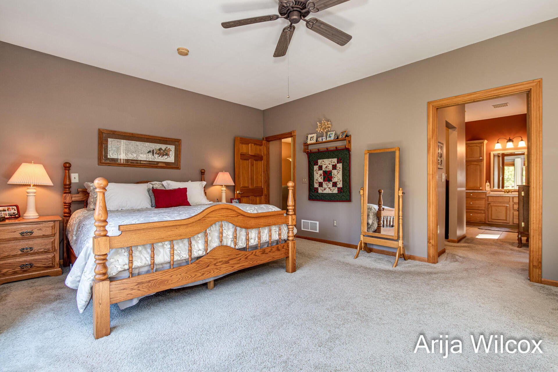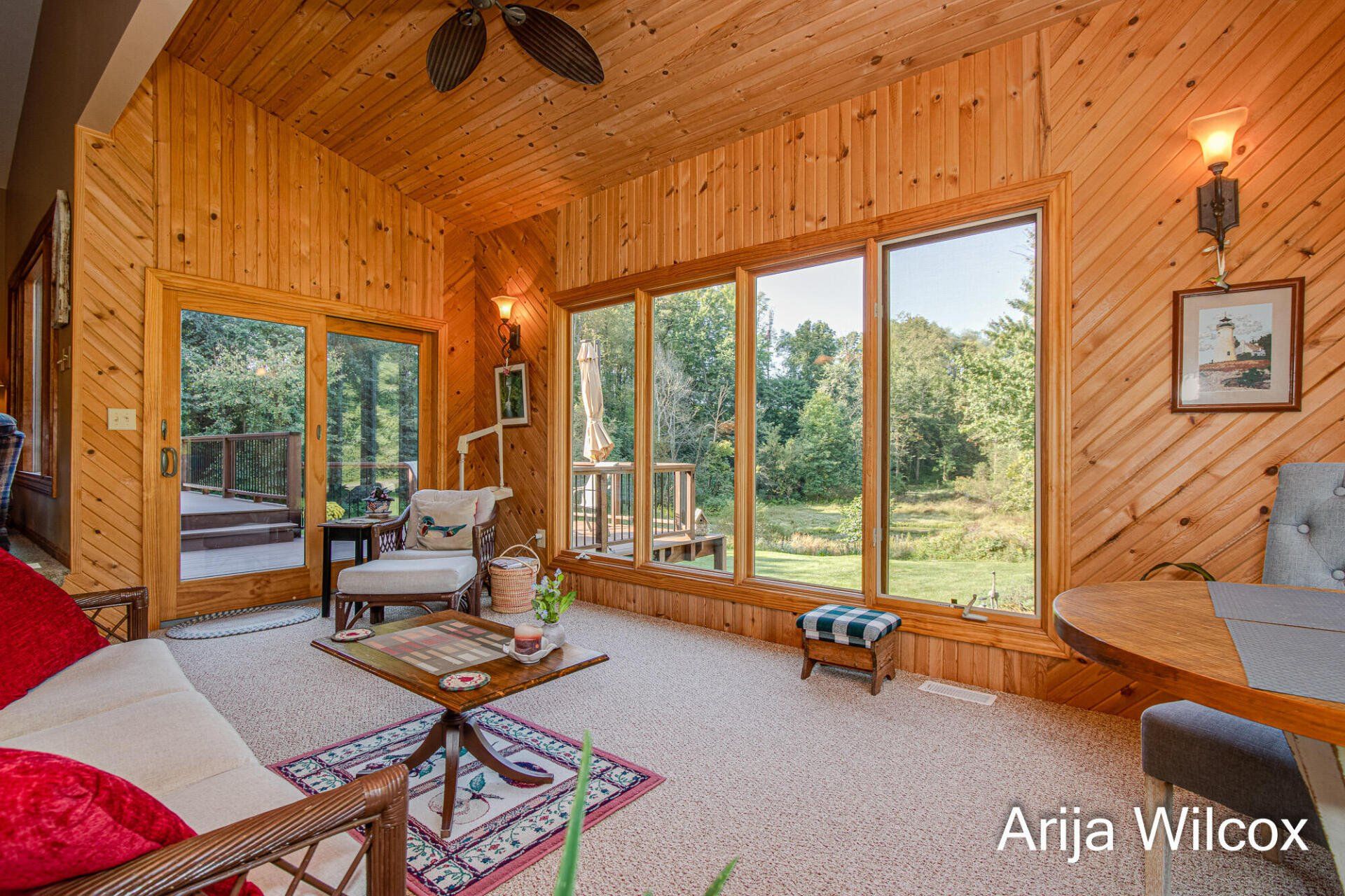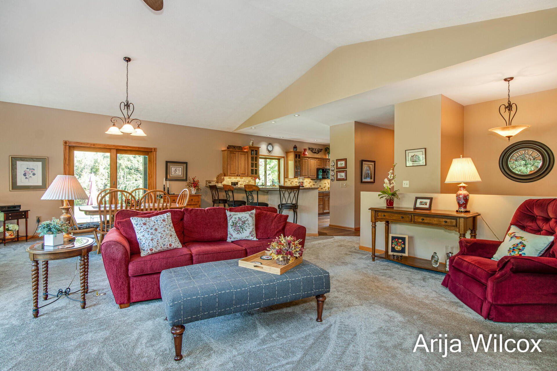 Exceptional 4 Br, 3 Bth - 3,814 SF Ranch Retreat, amazing property, and phenomenal opportunity with 3,360 SF hangar/pole barn on 15.99 acres surrounded by majestic trees with private pond, apple orchards beyond, just 30 minutes from Downtown Grand Rapids, minutes from local conveniences, and Big Pine Island Lake w/ public boat access.
