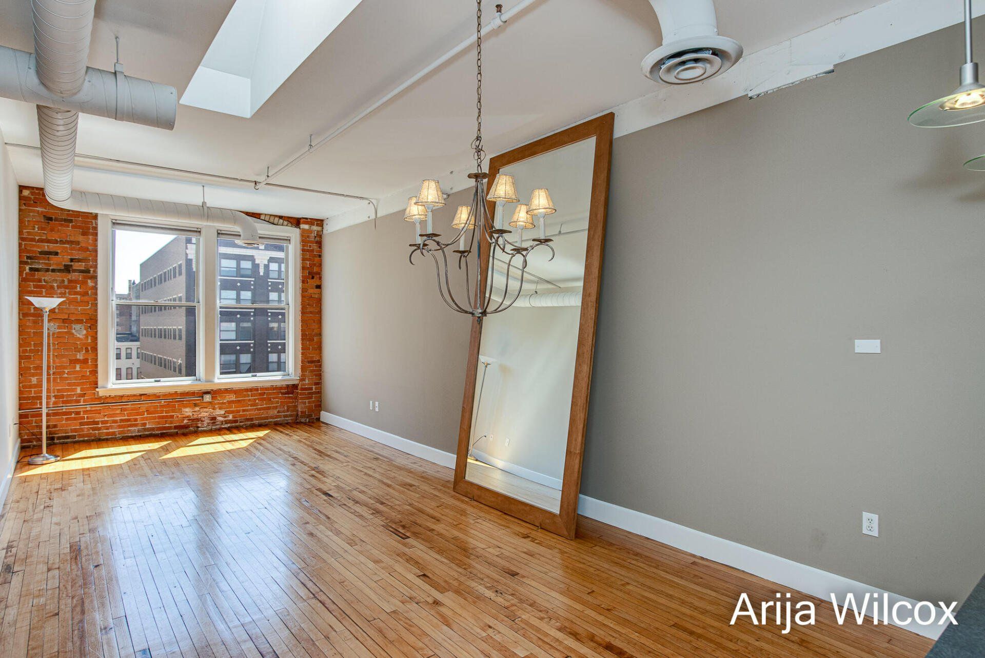 Suite 5A is meticulously restored to reflect the charm of a bygone era with timeless elegance unlike most with soaring-skylit ceilings, rustic rich wood flooring and incredible historic brick detail throughout, oversized windows with fantastic east and north views overlooking a blend of architecture from old to new.
